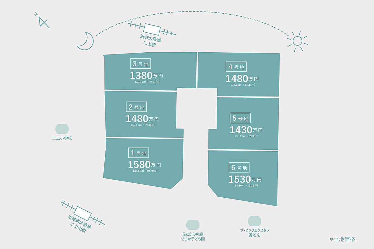 | 建築条件 | 建築条件付 建築条件付き土地とは一定期間内に、その土地に建築する建物の請負契約が締結されることを条件に販売される土地のことです。 土地売買契約締結後、建築請負会社と購入した土地に建築する建物について協議することになります。広告に参考プランが掲載されている場合でも、プランは一例であり、実際の建築プランは建築請負会社と土地購入者で協議・検討することが可能です。 期間内に建築プランが決まらず建築請負契約が成立しなければ土地売買契約は白紙となり、支払済みの金銭はすべて返還されます。 建築請負会社が指定されている場合と指定されていない場合があります。 また、建築条件付き土地の価格には、建物価格は含まれません。 |