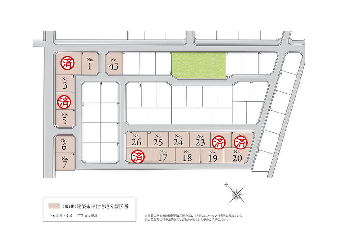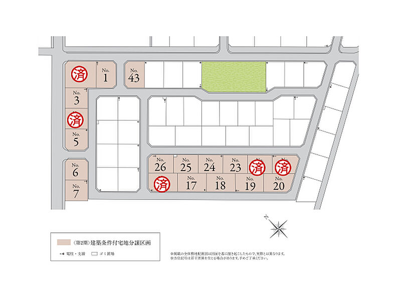 | 備考 | ■良好なまちなみの形成を図るため、「まちなみガイドライン」を作成しています。詳しくはお問い合わせください。■本分譲地は地区計画の区域内に位置しており、建築物を新築・増改築する際の基準について各種制限がございます。●その他の費用 基金・負担金/自治会費(月額1000円×10年分)120,000円を一括納入 ●水道加入金/114,400円(20mm・税込)●開発行為許可番号/第186号(令和4年10月20日)・第211号(令和4年11月22日)・第変11号(令和6年9月13日)●開発行為検査済番号/第96号(令和6年9月17日)●道路幅員6.35m(公道・アスファルト舗装)、9.61m(公道・アスファルト舗装)、10.35m(開発行為による道路・アスファルト舗装)●用途地域/市街化調整区域のため用途地域の指定はありません(開発許可を受けているため住宅の建築が可能です)●私道負担/なし●事業主の名称/株式会社ファーストプランニング用途地域/市街化調整区域のため用途地域の指定はありません(開発許可を受けているため住宅の建築が可能です)。●本分譲地の土地売買契約は、契約締結後3ヶ月以内に売主である積水ハウス株式会社との間で建築工事請負契約が成立することを条件として効力を生じます。期限までに、建築工事請負契約が成立しなかったときは、土地売買契約の無効が確定し、受領済の手付金等は、全額無利息にてすみやかに返還いたします。 | ||