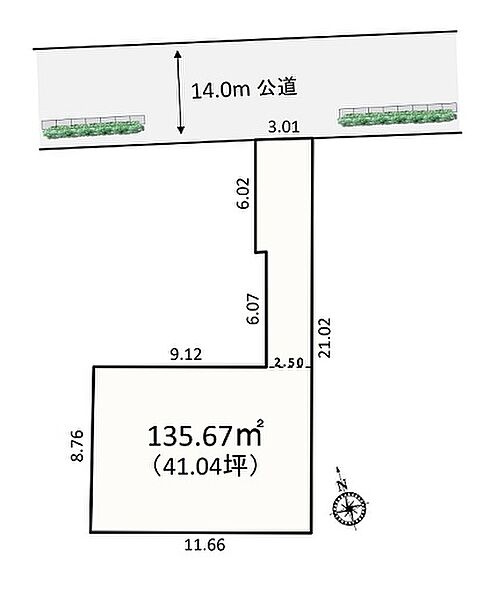 | 駐車場 | 1台 | 道路の幅員 | 北側14m |