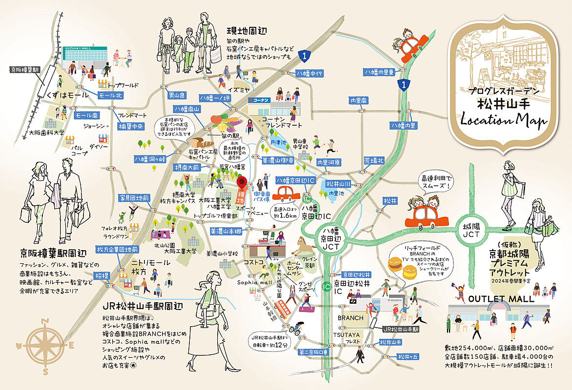 JR片町線(学研都市線)「松井山手」駅 御幸南 徒歩1分~5分 京阪本線「樟葉」駅 御幸南 徒歩1分~5分 JR片町線(学研都市線)「松井山手」駅 車で約3km |