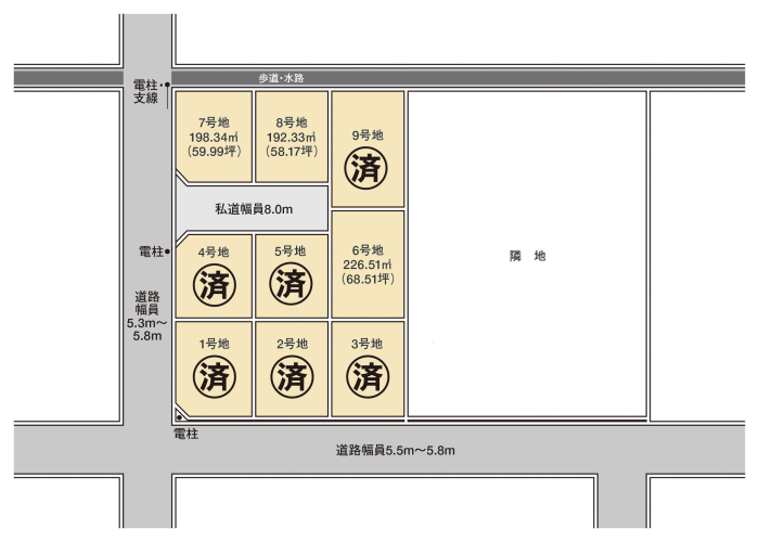 | 建物面積 | - | 土地面積 | 192.33m2~226.51m2私道負担有り私道(面積206.07m2)の持ち分1/5があります |