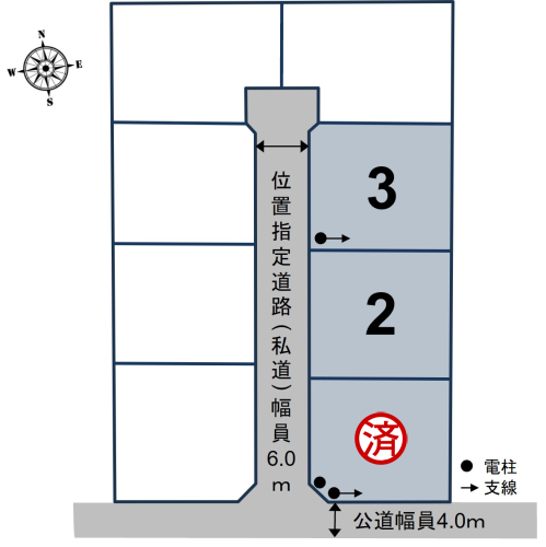 | 駐車場 | - | 道路の幅員 | 道路幅:6m/道路幅の備考:位置指定道路(私道)6.0m |
