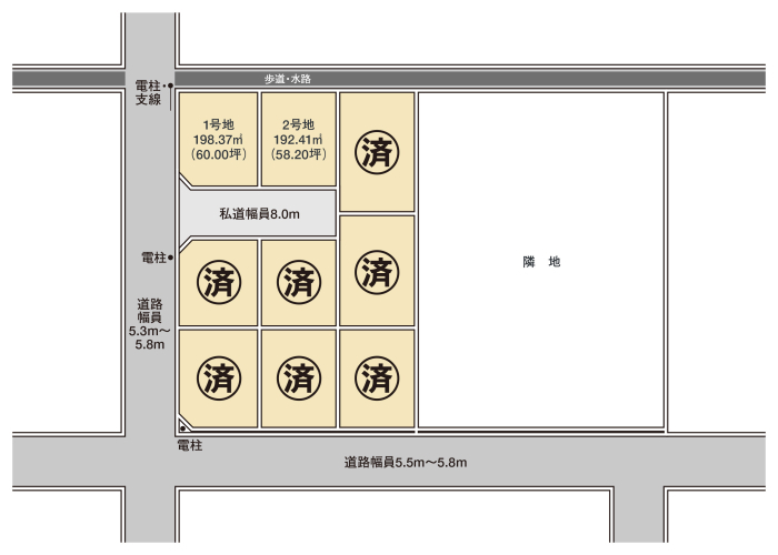 | 駐車場 | - | 道路の幅員 | 道路幅:5.3m~5.8m/道路幅の備考:西側道路幅5.3~5.8m |