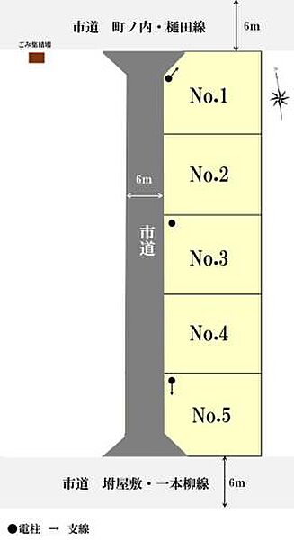 | 駐車場 | - | 道路の幅員 | 道路幅:6m/道路幅の備考:市道6.0m(アスファルト舗装 北側、南側、分譲地内道路) |