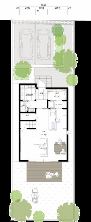 - ※完成予想図やCG合成画像は、門塀・植栽・庭・外観等、実際とは多少異なる場合があります。