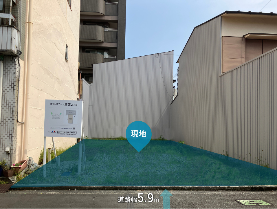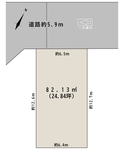 | 駐車場 | - | 道路の幅員 | 道路幅:5.9m/道路幅の備考:公道北側アスファルト舗装 |