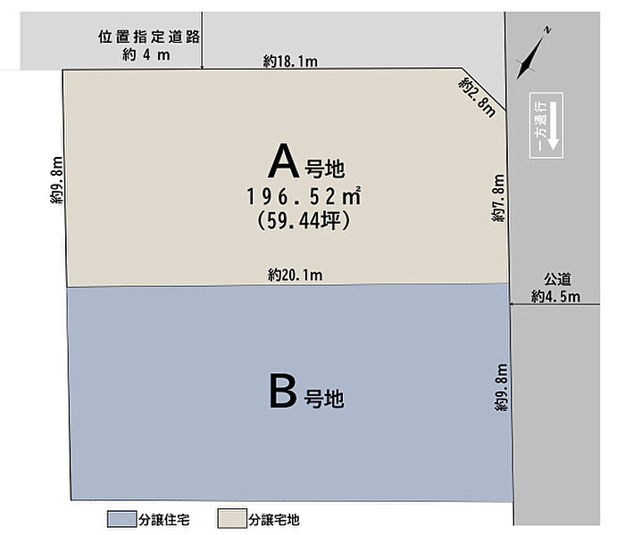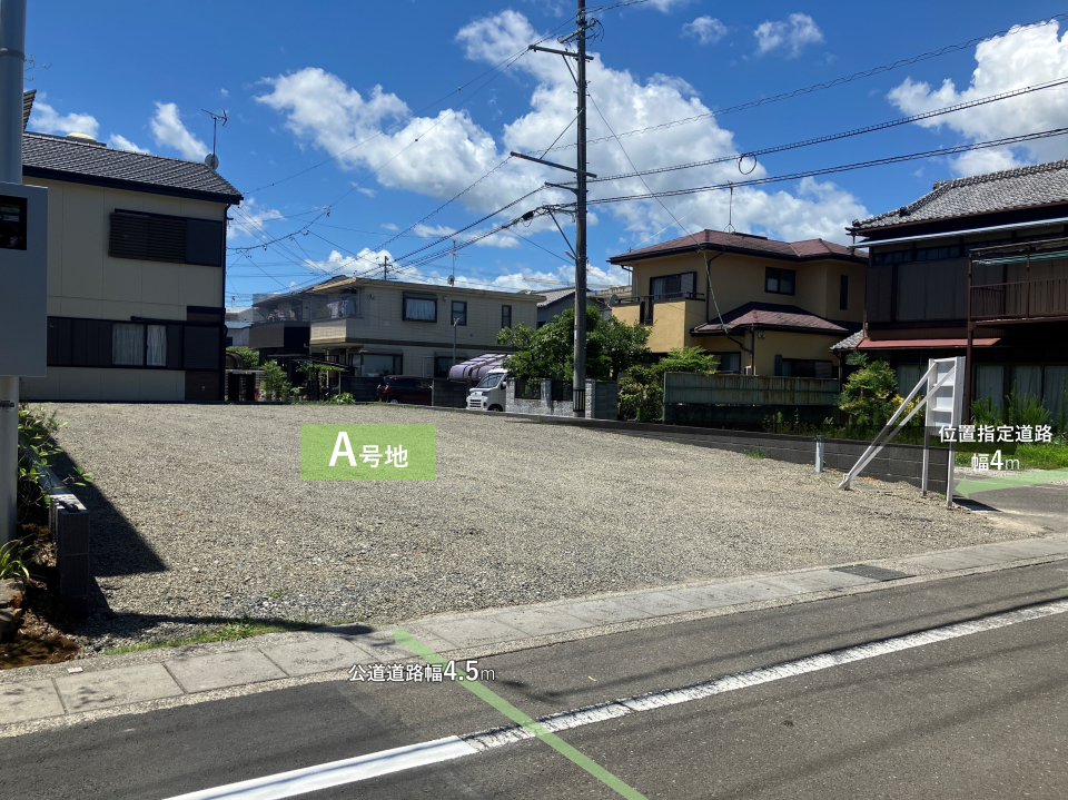 | 駐車場 | - | 道路の幅員 | 道路幅:4.5m/道路幅の備考:公道東側4.5m、位置指定道路北側4m、アスファルト舗装 |