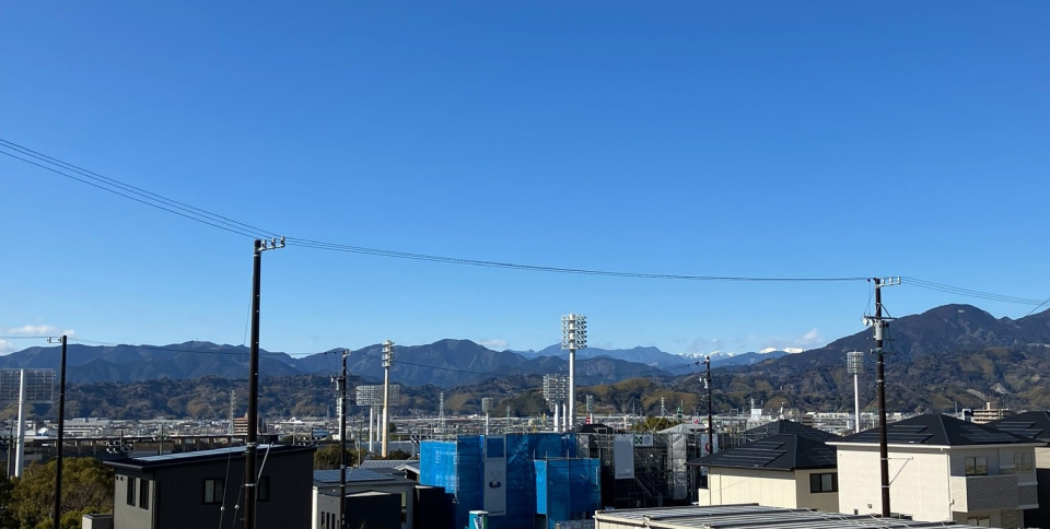 眼下に草薙運動公園。遥かに南アルプスまで望める高台のまち。 (現地から40m~50m。 徒歩1分。(最長))