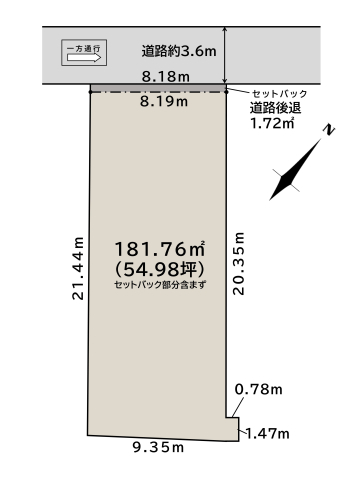 | 建物面積 | - | 土地面積 | 181.76m2私道負担有りセットバック部分(ア)1.72m2を負担していただきます。 |