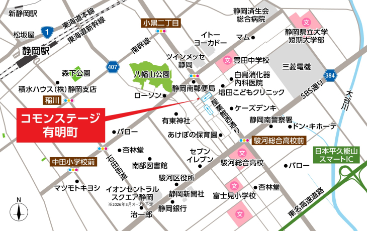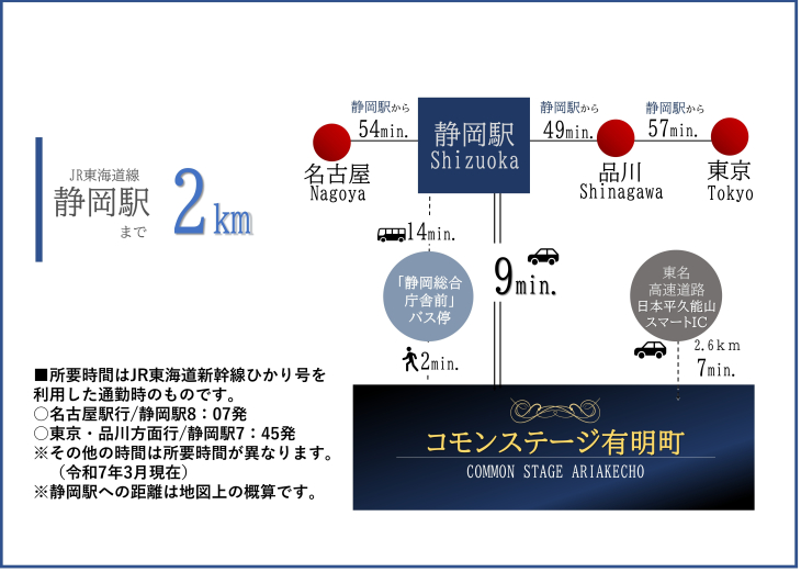 静岡駅や東名高速道路へのアクセスが良く、交通も便利です。
