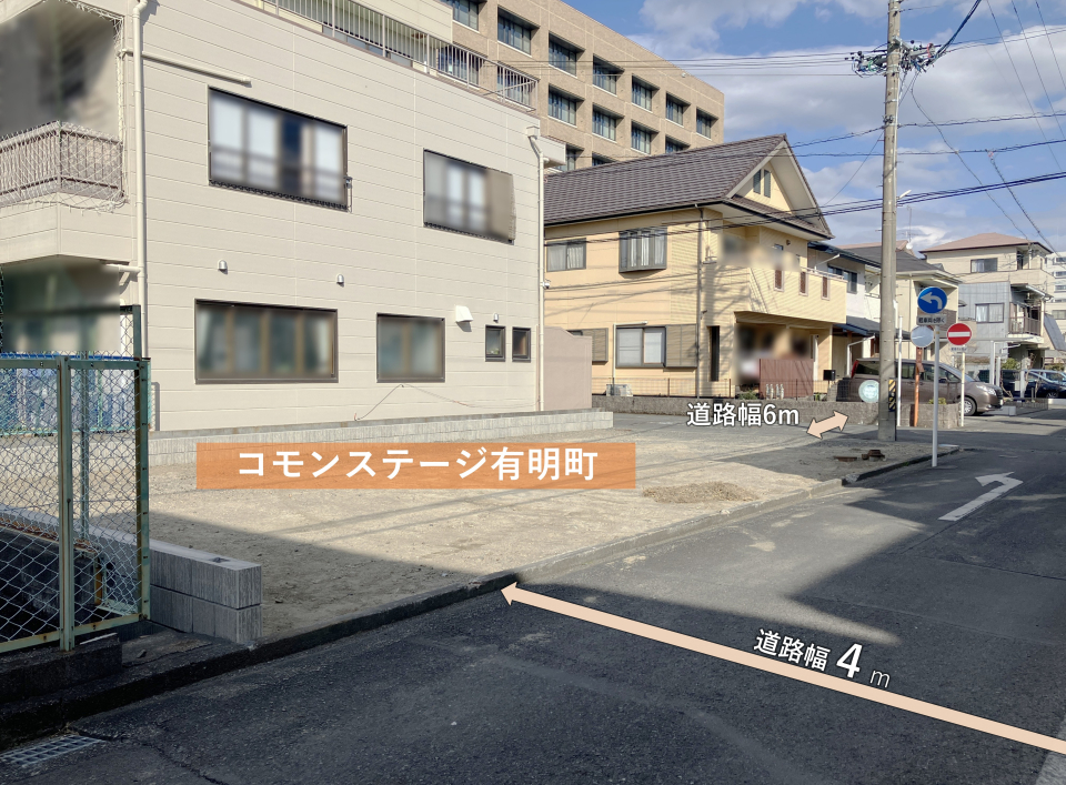 | 駐車場 | - | 道路の幅員 | 道路幅:4m~6m/道路幅の備考:南側4m、東側6mアスファルト舗装 |