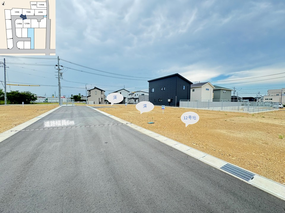 | 主たる設備の概要 | ●電気:中部電力●ガス:都市ガス(サーラエナジー)●上水道:公営水道●汚水:公共下水道●雨水:U字側溝 | 開発許可番号 | 完成済(5号地、7号地、8号地、12号地、13号地、18号地、19号地) |