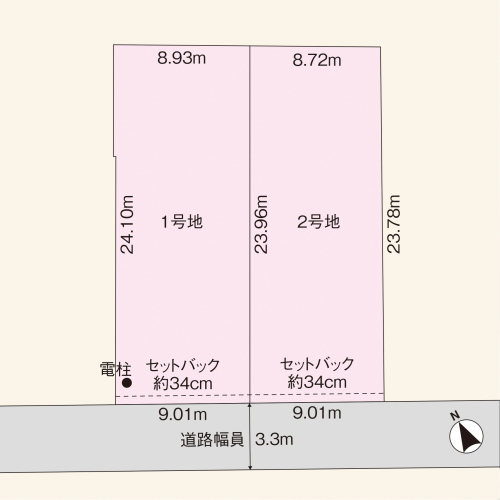 | 駐車場 | - | 道路の幅員 | 道路幅:3.3m/道路幅の備考:セットバック有(セットバック後道路幅員3.6m、セットバック部分は市に移管します。) |