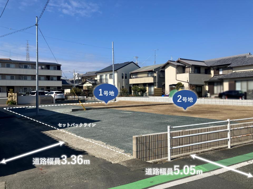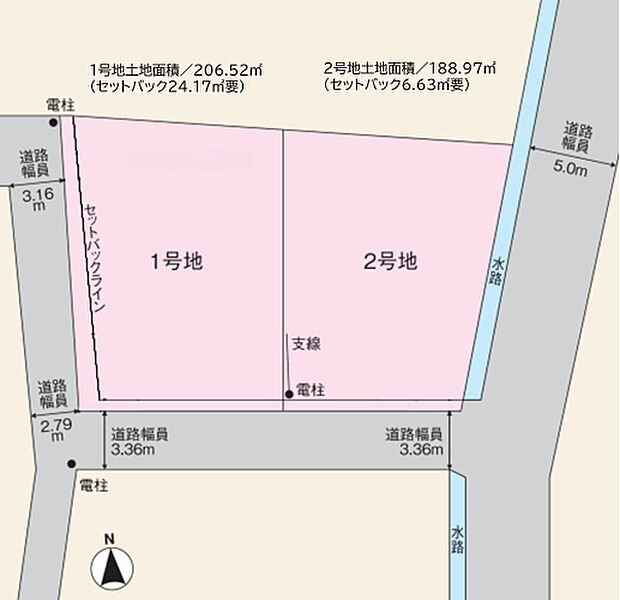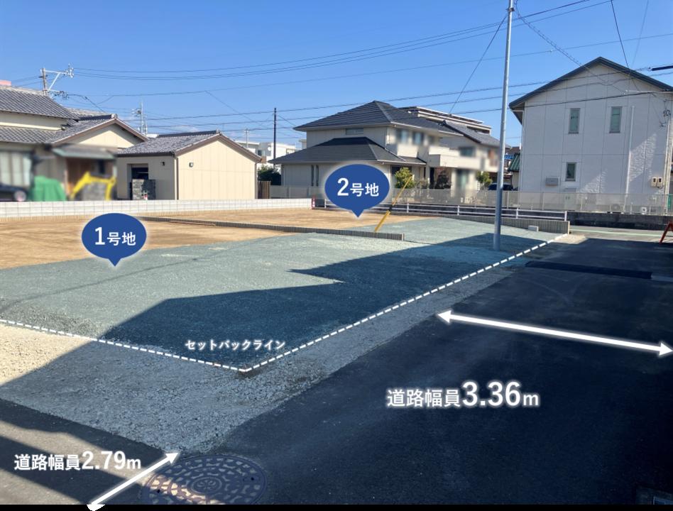 | 建物面積 | - | 土地面積 | 188.97m2~206.52m2私道負担有り私道負担あり。私道負担面積は、1号地は24.17平方メートル、2号地は6.63平方メートルになります。 |