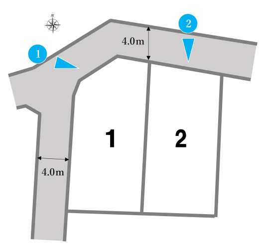 | 駐車場 | - | 道路の幅員 | 道路幅:4m/道路幅の備考:西側4.0m、北側4.0m(公道・アスファルト舗装) |