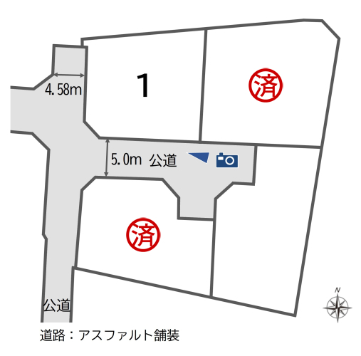 | 駐車場 | - | 道路の幅員 | 道路幅:4.5m~5m/道路幅の備考:西側道路幅員4.58m、団地内5.0m公道 |