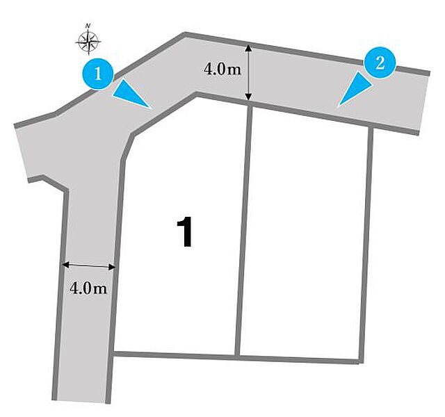 | 駐車場 | - | 道路の幅員 | 道路幅:4m/道路幅の備考:西側4.0m、北側4.0m(公道・アスファルト舗装) |