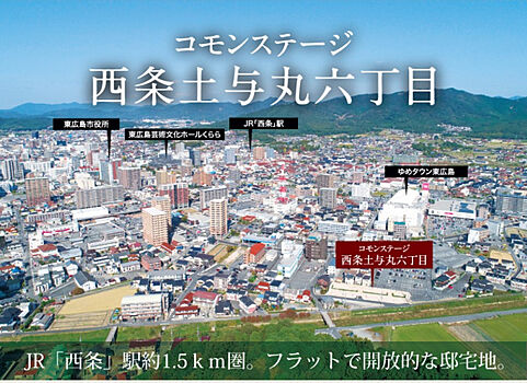 JR「西条」駅約1.5km圏。フラットで開放的な邸宅地。大型複合施設ゆめモール西条へ徒歩11分。事前予約制によるご案内を実施中です。