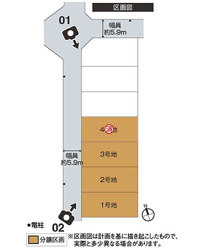 | 駐車場 | - | 道路の幅員 | 道路幅:5.9m/道路幅の備考:●道路/幅員:西側約5.9m(アスファルト舗装) |