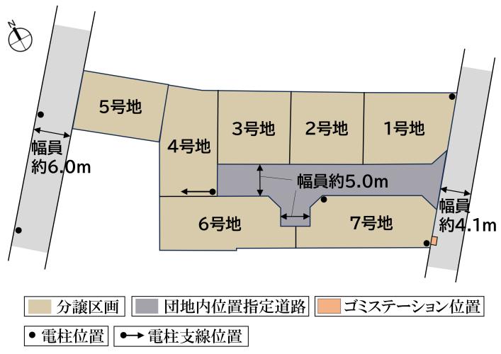 | 駐車場 | - | 道路の幅員 | 道路幅:4.1m~6m/道路幅の備考:道路/幅員約4.1m(公道・アスファルト舗装)、幅員約5.0m(私道・アスファルト舗装)、幅員約6.0m(公道・アスファルト舗装) |