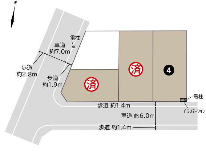 | 備考 | ●道路幅員/西側市道:約11.7m(車道約7.0m・歩道約1.9m,歩道約2.8m・アスファルト舗装)、南側市道:約8.8m(車道約6.0m・両側歩道約1.4m・アスファルト舗装)●私道負担/なし●水道分担金/143,000円(税込、口径20mm)が必要です。●ゴミステーション/各区画専有宅地の所有者で共有し(各宅地につき持ち分1/4)、共同で維持管理をしていただきます。●確定測量が未実施のため、面積について計画と差が生じる場合があります。実測面積との差が生じた場合はm2当たり単価に基づき、売買代金を精算致します。 ●本団地は良好な住環境形成の為、まちなみガイドラインを設けております。●各施設の距離は地図より算出。徒歩分数は1分80mで算出しています。●本分譲地は現在販売活動中につき売約済となる場合がございます。あらかじめご了承くださいませ。●当会場では、購入のお申込みは受け付けておりません。●本分譲地の土地売買契約は、契約締結後3ヶ月以内に売主である積水ハウス株式会社との間で建築工事請負契約が成立することを条件として効力を生じます。期限までに、建築工事請負契約が成立しなかったときは、土地売買契約の無効が確定し、受領済の手付金等は、全額無利息にてすみやかに返還いたします。 | ||