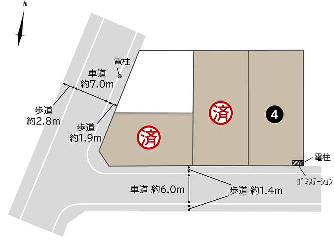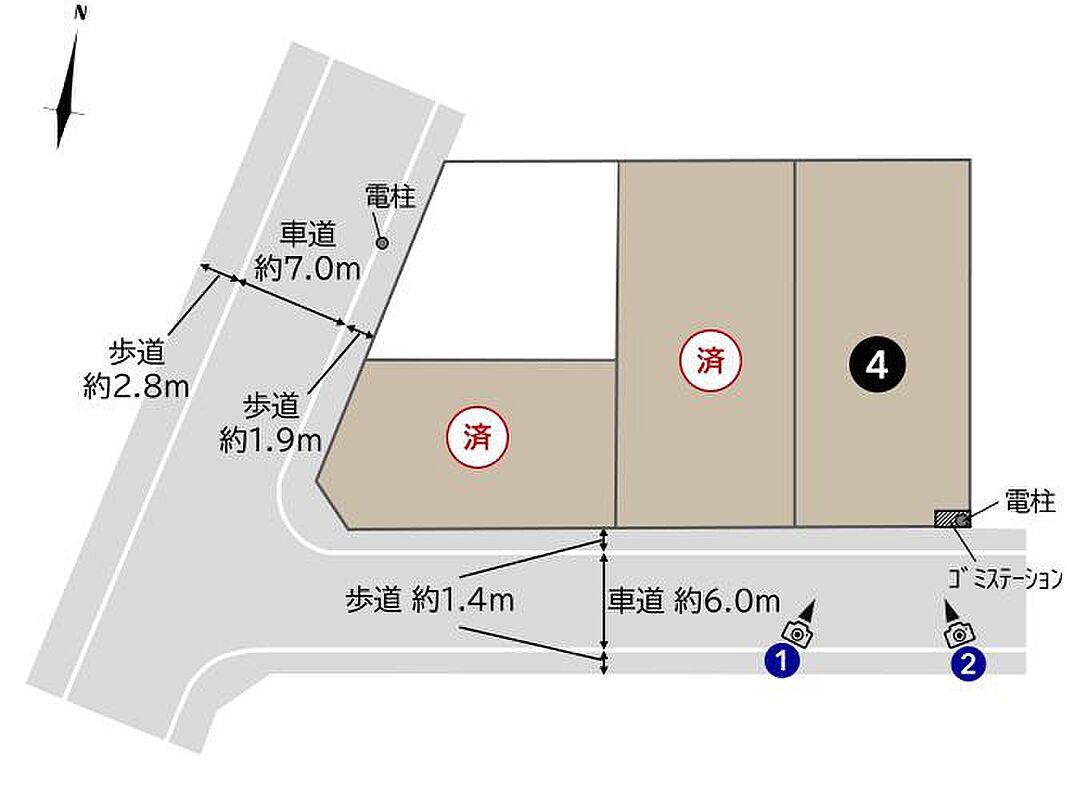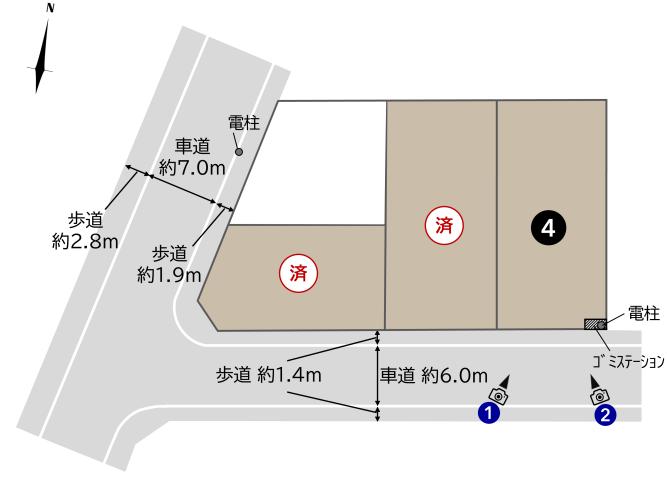 | 備考 | ●道路幅員/西側市道:約11.7m(車道約7.0m・歩道約1.9m,歩道約2.8m・アスファルト舗装)、南側市道:約8.8m(車道約6.0m・両側歩道約1.4m・アスファルト舗装)●私道負担/なし●水道分担金/143,000円(税込、口径20mm)が必要です。●ゴミステーション/各区画専有宅地の所有者で共有し(各宅地につき持ち分1/4)、共同で維持管理をしていただきます。●確定測量が未実施のため、面積について計画と差が生じる場合があります。実測面積との差が生じた場合はm2当たり単価に基づき、売買代金を精算致します。 ●本団地は良好な住環境形成の為、まちなみガイドラインを設けております。●各施設の距離は地図より算出。徒歩分数は1分80mで算出しています。●本分譲地は現在販売活動中につき売約済となる場合がございます。あらかじめご了承くださいませ。●当会場では、購入のお申込みは受け付けておりません。●本分譲地の土地売買契約は、契約締結後3ヶ月以内に売主である積水ハウス株式会社との間で建築工事請負契約が成立することを条件として効力を生じます。期限までに、建築工事請負契約が成立しなかったときは、土地売買契約の無効が確定し、受領済の手付金等は、全額無利息にてすみやかに返還いたします。 | ||