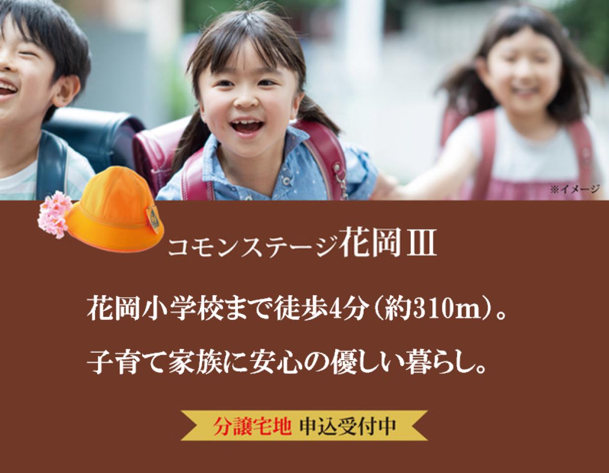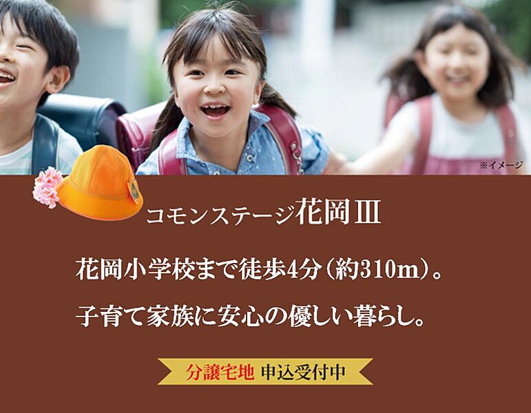 閑静な住宅地で、花岡小学校まで徒歩4分(約310m)(最長)と、子育て中の家族にとってうれしい住環境です。