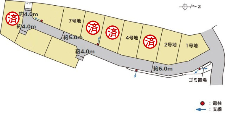 | 主たる設備の概要 | ●電気:中国電力 ●ガス:個別LPガス ●水道:公営水道 ●汚水・雑排水:公共下水道 ●雨水:U字側溝 ●水道分担金/44,000円(税込10%)【口径20mm】 | 開発許可番号 | 完成済(1、2、4、7) |