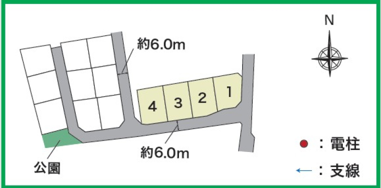 | 開発面積 | 5181.78m2 | 建ぺい率・容積率 | 建ぺい率:60%(1号地は70%)/容積率:100% |