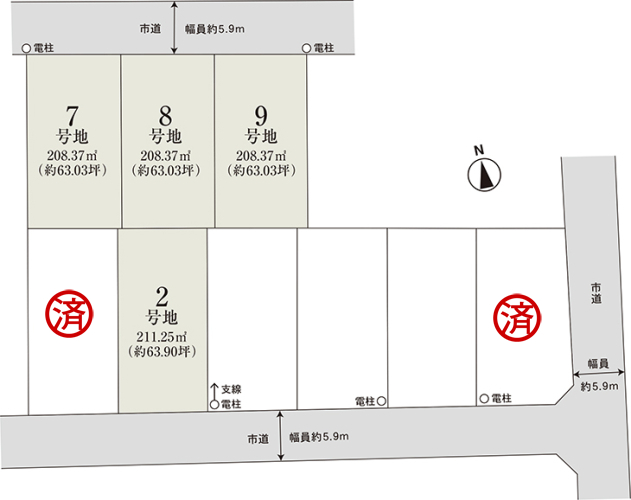 | 備考 | ※開発許可番号:第R5-57号(令和5年9月5日)※ガス:2号地/個別プロパンガス、7~9号地/都市ガス(四国ガス)※北側・東側・南側:市道約5.9m(アスファルト舗装)※ゴミステーション:自治会指定場所(自治会費2000円/年)※本分譲地は良好な住環境をもったまちなみを形成するために、外構・建物の配慮等に関して独自のまちなみガイドラインを設定しています。 まちなみ形成への趣旨にご賛同、ご協力をお願いいたします。●本分譲地の土地売買契約は、契約締結後3ヶ月以内に売主である積水ハウス株式会社との間で建築工事請負契約が成立することを条件として効力を生じます。期限までに、建築工事請負契約が成立しなかったときは、土地売買契約の無効が確定し、受領済の手付金等は、全額無利息にてすみやかに返還いたします。 | ||