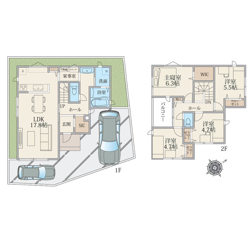- ※完成予想図やCG合成画像は、門塀・植栽・庭・外観等、実際とは多少異なる場合があります。