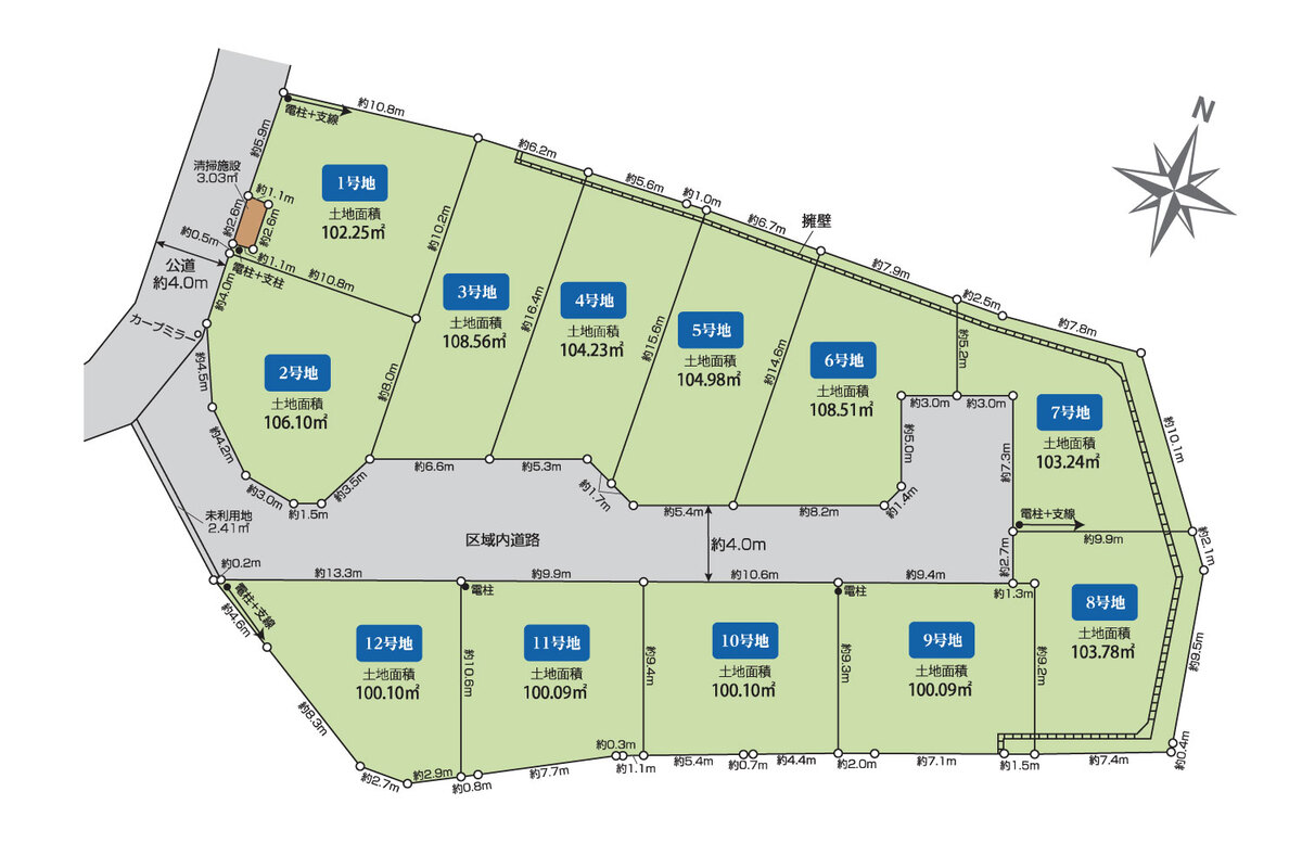 | 駐車場 | - | 道路の幅員 | ■西側約4.0m公道、分譲地内開発道路約4.0m■私道持分/283m2×1/11(2~12号区) |