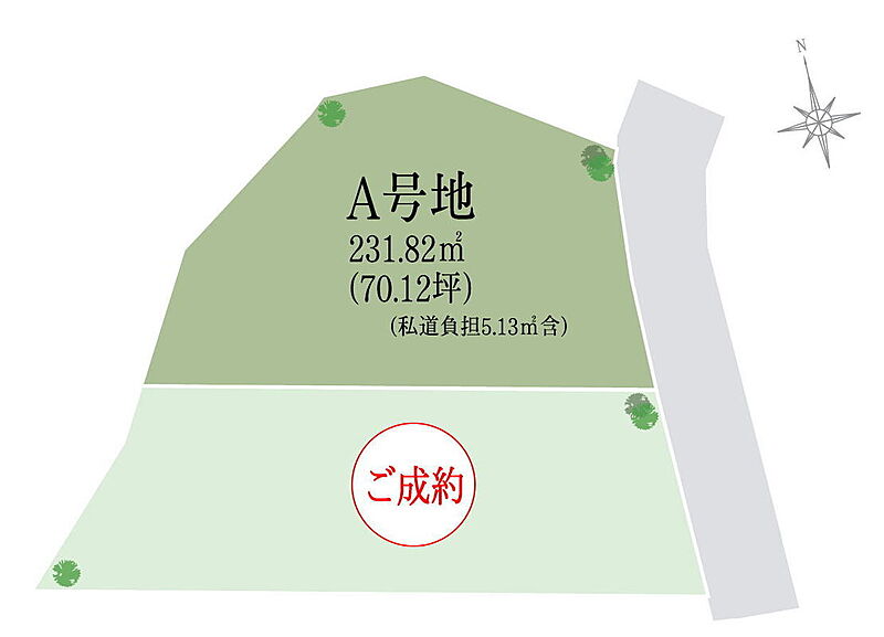 | 駐車場 | - | 道路の幅員 | 道路幅:4m、A号地(私道負担5.13m2含) |