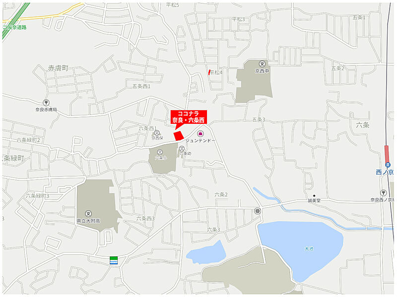 - 近鉄橿原線「西ノ京」駅 徒歩17分近鉄橿原線「西ノ京」駅 バス4分 「六条幼稚園東口」バス停 徒歩4分近鉄奈良線「学園前」駅 バス16分 「六条西三丁目」バス停 徒歩8分