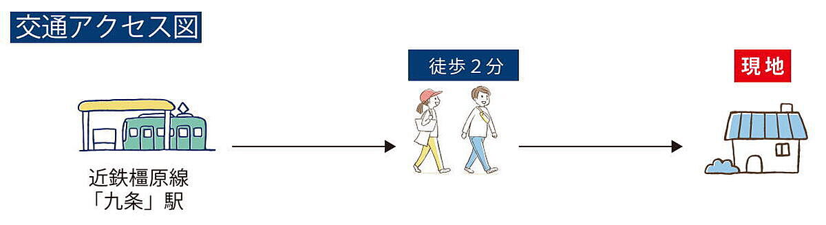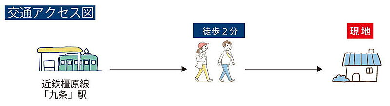 近鉄橿原線「九条」駅 徒歩2分 近鉄橿原線「西ノ京」駅 徒歩15分 近鉄橿原線「近鉄郡山」駅 徒歩25分 |