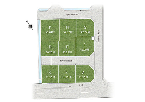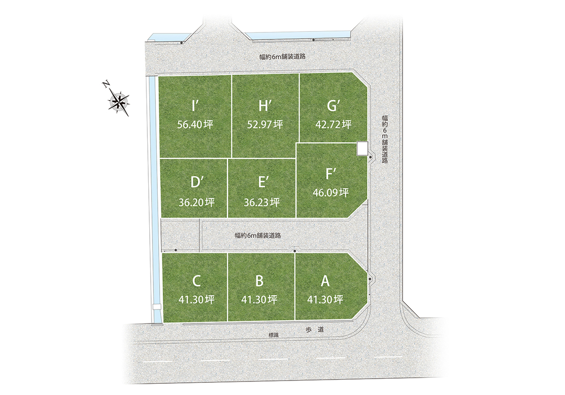 ・街区道路は約6m幅を確保した、ゆとりある街区設計です。