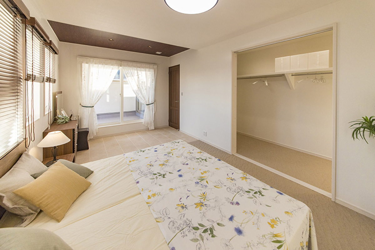 バルコニーに面した明るく開放的な洋室です。大容量の収納は、スッキリとした暮らしをお送り頂けます。また、クローゼットに荷物を収納すると壁面を大きく使えるのでインテリアもこだわれます。