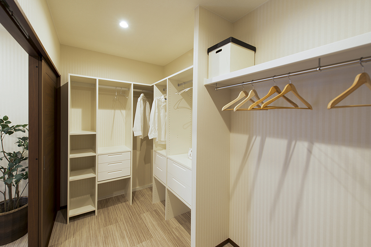 防災用品や、ストックしておきたい食品などもスッキリ収納可能な広々とした収納スペースです。カウンターデスクを備え、ご家族がマルチで使えるスペースとしても活躍します。