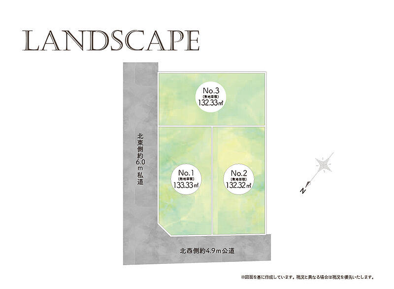 | 駐車場 | - | 道路の幅員 | 北西側約4.9m公道、北東側約6.0m私道 ※私道持分77m2×1/2(No.1・No.3)有 |
