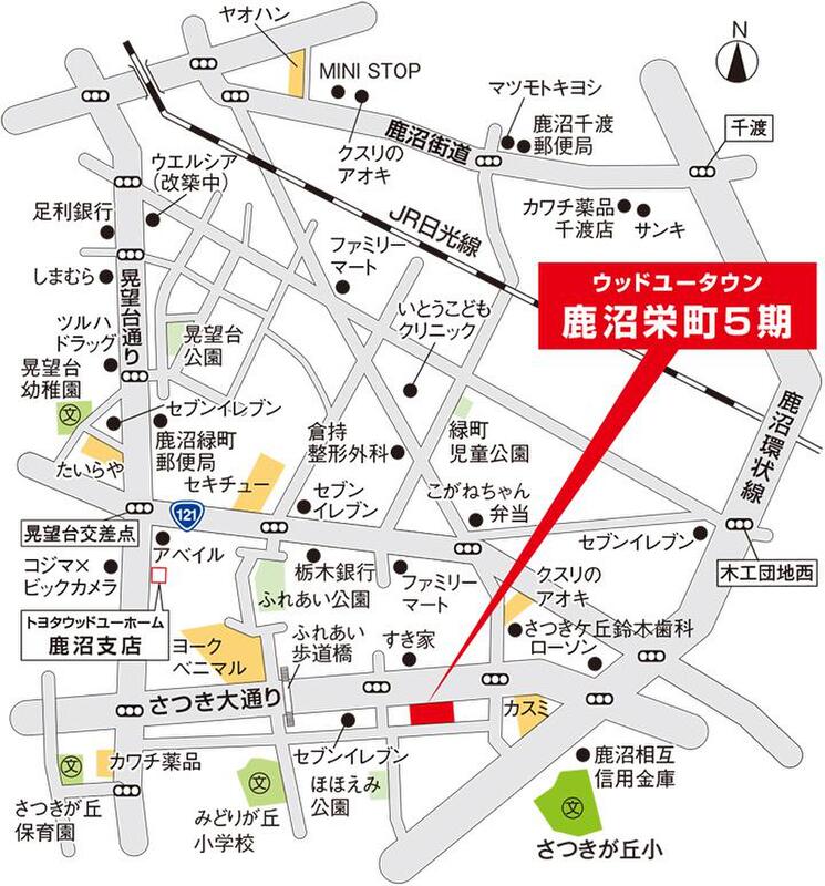 JR日光線「鹿沼」駅 徒歩34分 リーバス「栄町2丁目」バス停 徒歩5分 |