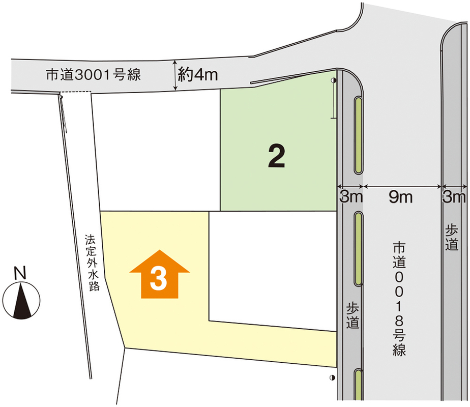 | 駐車場 | - | 道路の幅員 | 東側約15m、北側約4m既存市道 |