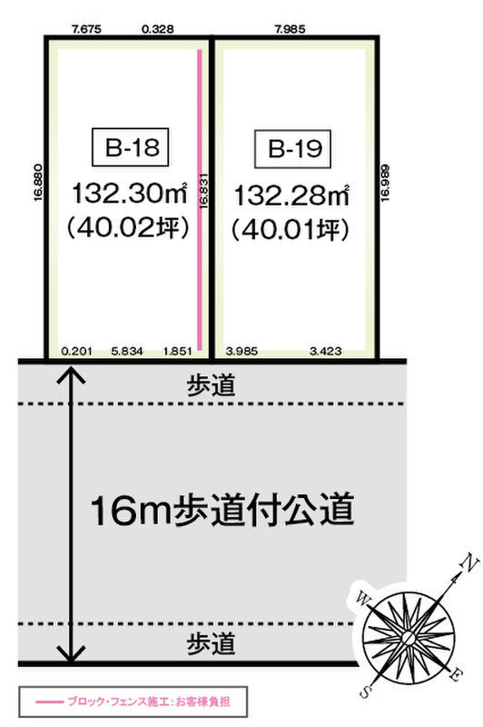 | 建物面積 | - | 土地面積 | 132.28(40.01坪)~132.30m2(40.02坪) 2区画 |