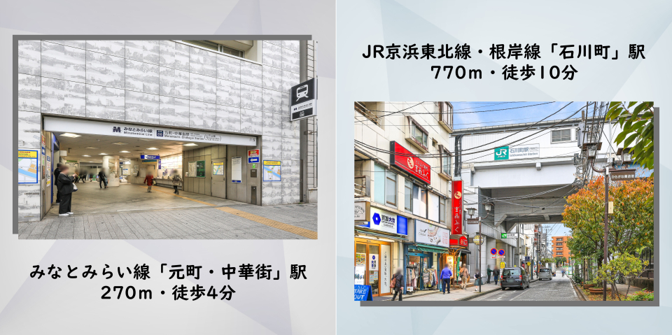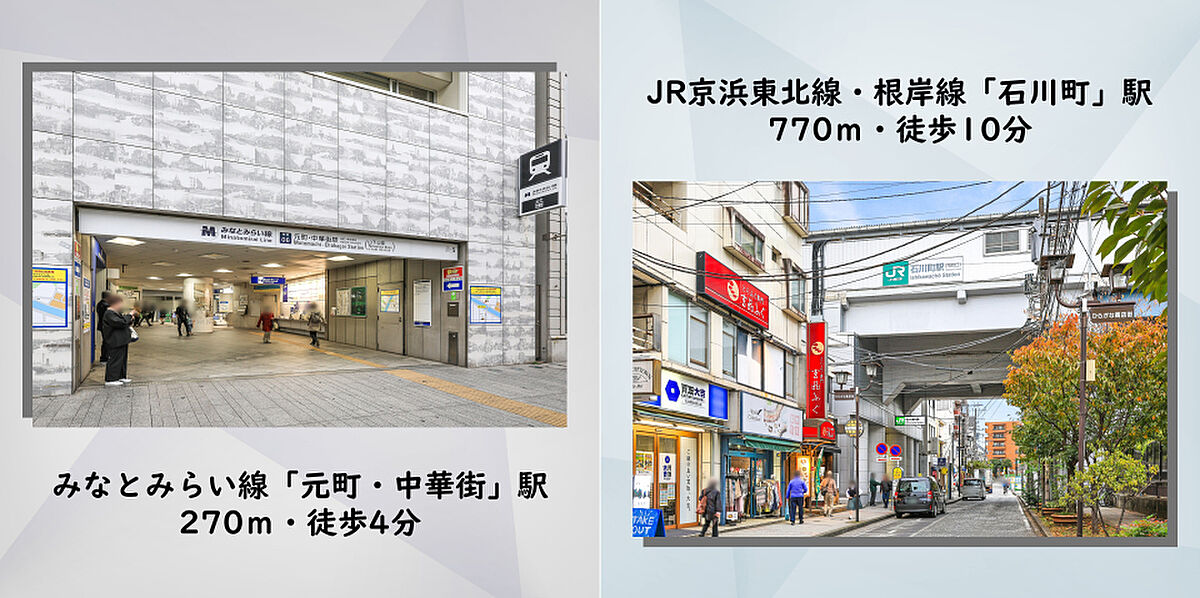 みなとみらい線「元町・中華街」駅 徒歩4分 JR京浜東北・根岸線「石川町」駅 徒歩10分 |