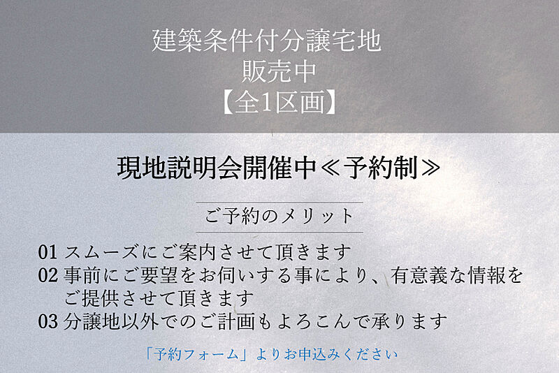 | 建築条件 | 建築条件付 建築条件付き土地とは一定期間内に、その土地に建築する建物の請負契約が締結されることを条件に販売される土地のことです。 土地売買契約締結後、建築請負会社と購入した土地に建築する建物について協議することになります。広告に参考プランが掲載されている場合でも、プランは一例であり、実際の建築プランは建築請負会社と土地購入者で協議・検討することが可能です。 期間内に建築プランが決まらず建築請負契約が成立しなければ土地売買契約は白紙となり、支払済みの金銭はすべて返還されます。 建築請負会社が指定されている場合と指定されていない場合があります。 また、建築条件付き土地の価格には、建物価格は含まれません。 |