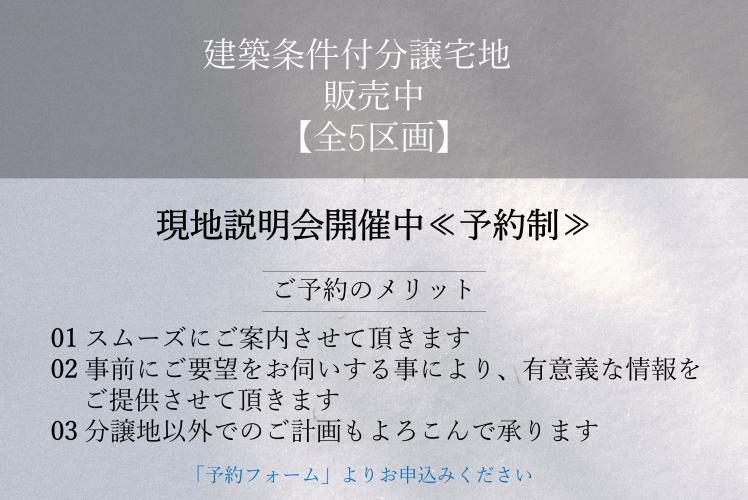 | 建築条件 | 建築条件付 建築条件付き土地とは一定期間内に、その土地に建築する建物の請負契約が締結されることを条件に販売される土地のことです。 土地売買契約締結後、建築請負会社と購入した土地に建築する建物について協議することになります。広告に参考プランが掲載されている場合でも、プランは一例であり、実際の建築プランは建築請負会社と土地購入者で協議・検討することが可能です。 期間内に建築プランが決まらず建築請負契約が成立しなければ土地売買契約は白紙となり、支払済みの金銭はすべて返還されます。 建築請負会社が指定されている場合と指定されていない場合があります。 また、建築条件付き土地の価格には、建物価格は含まれません。 |