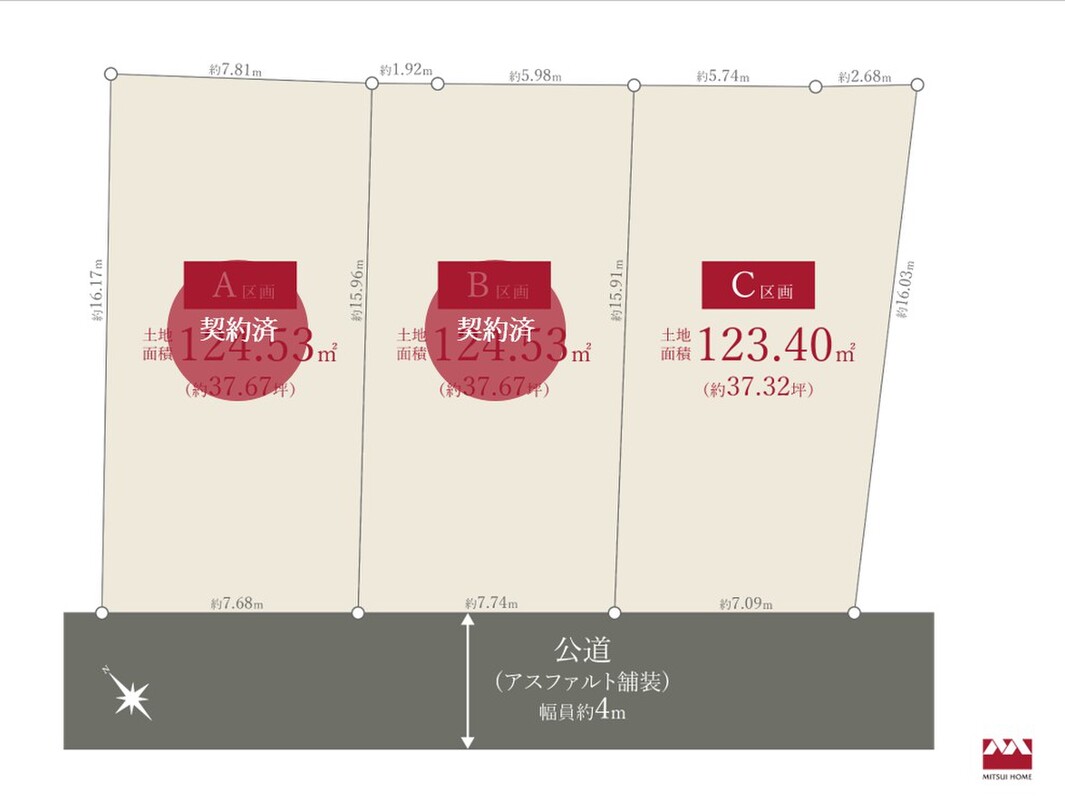 南道路で日当たり良好仲介手数料不要の三井ホームの分譲地
