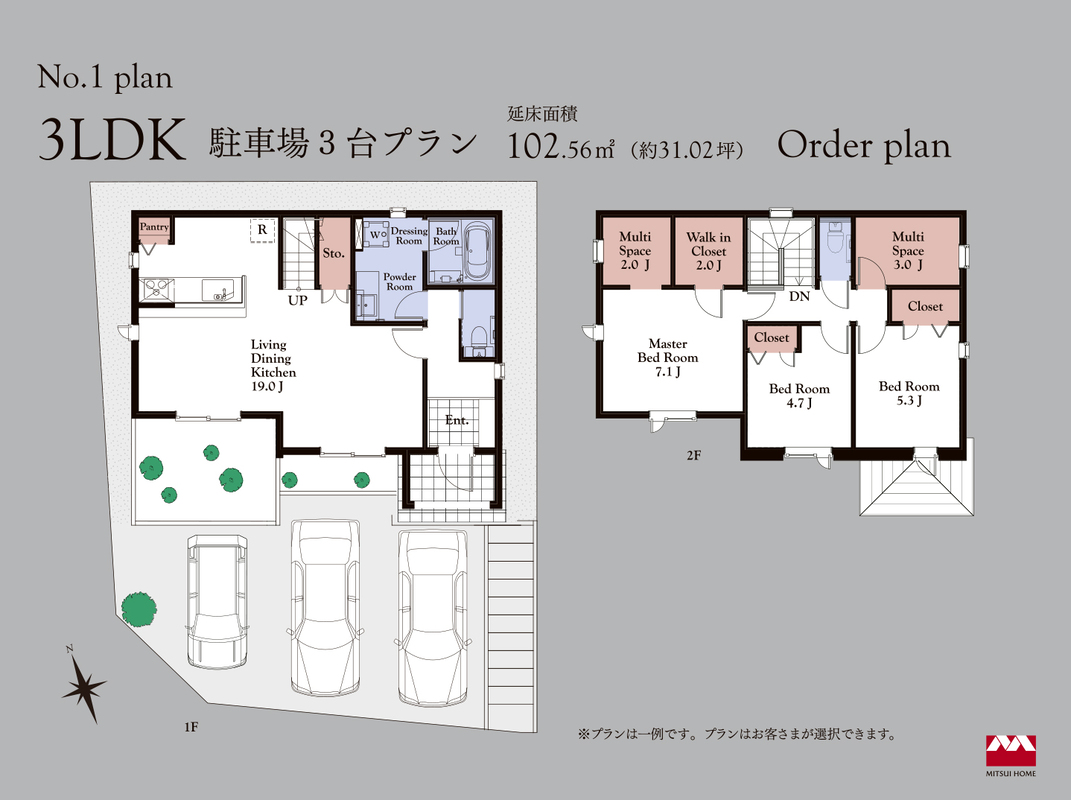 プランはお客様のご希望で自由に作成可能です。建物本体価格以外に屋外設備工事費・外構工事費・空調工事費・照明・カーテン・設計申請料・登記費用・融資関連諸費用が発生いたします。