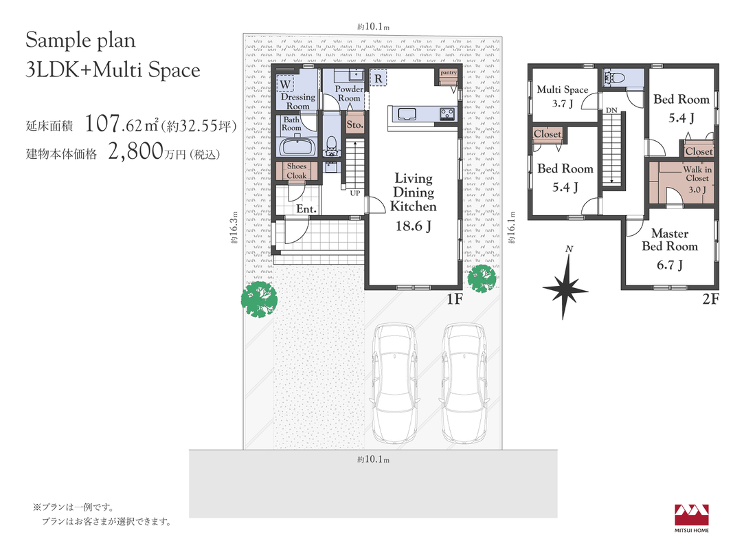 - ※完成予想図やCG合成画像は、門塀・植栽・庭・外観等、実際とは多少異なる場合があります。