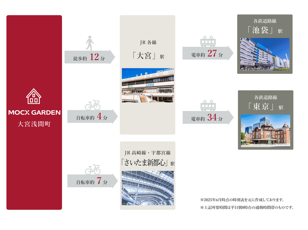 JR京浜東北・根岸線「大宮」駅 徒歩12分 JR埼京線「大宮」駅 徒歩12分 湘南新宿ライン宇須「大宮」駅 徒歩12分 |