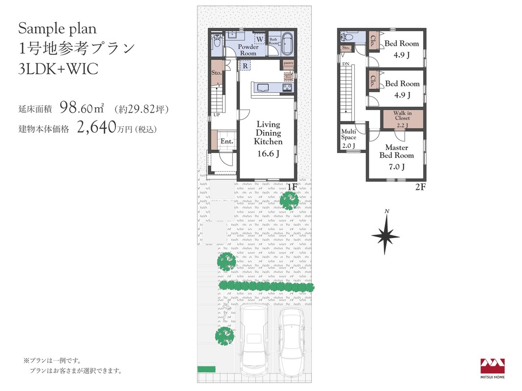 - ※完成予想図やCG合成画像は、門塀・植栽・庭・外観等、実際とは多少異なる場合があります。